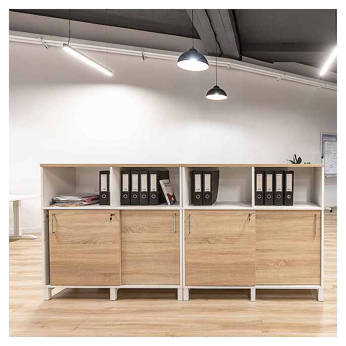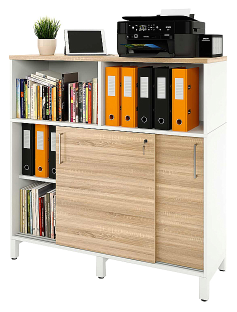 Локер ZAMM 2 полки с надстройкой МК 414 предназначен для безопасного хранения личных вещей, документов и гаджетов в раздевалках, офисах и общественных помещениях. Модель оснащена 2 раздвижными дверьми внизу, 2 закрытыми полками, открытой надстройкой, задней стенкой и центральным встроенным замком. Шариковые направляющие гарантируют плавный и бесшумный ход дверей. Задняя стенка выполняет защитную функцию и служит удобной магнитной доской для заметок. Регулируемые подпятники позволяют установить локер на неровных поверхностях. Металлокаркас и задняя стенка выполнены из холоднокатаной стали, задняя стенка - из металла, полки, корпус и фасады - из высококачественной ЛДСП австрийской фирмы EGGER с защитной кромкой по периметру. Особенности: