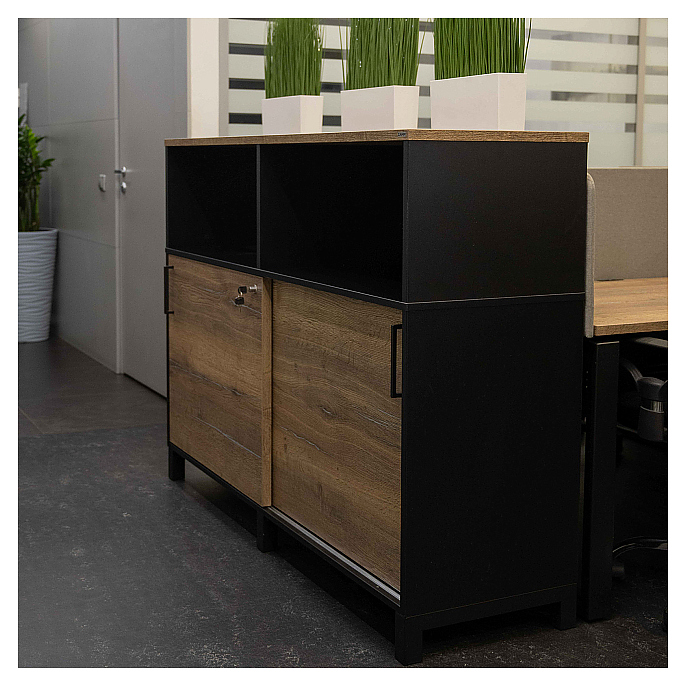 Локер ZAMM 2 полки с надстройкой МК 600 120х60х120,7 см фасад дуб Галифакс олово, корпус черный