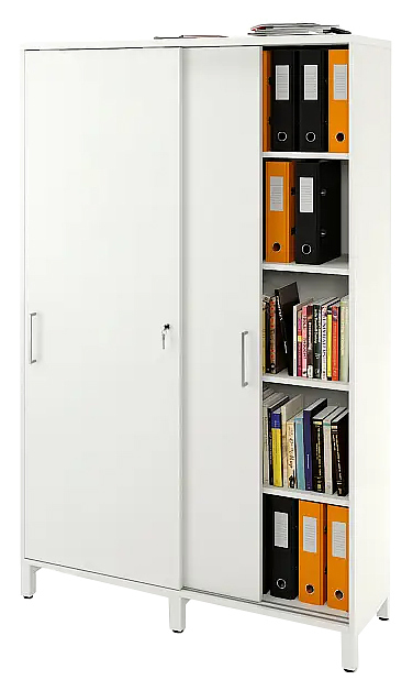 Локер ZAMM 5 полок МК 414 предназначен для безопасного хранения личных вещей, документов и гаджетов в раздевалках, офисах и общественных помещениях. Модель оснащена 2 раздвижными дверьми, 5 полками и центральным встроенным замком. Шариковые направляющие гарантируют плавный и бесшумный ход дверей. Задняя стенка выполняет защитную функцию и служит удобной магнитной доской для заметок. Регулируемые подпятники позволяют установить локер на неровных поверхностях. Металлокаркас и задняя стенка выполнены из холоднокатаной стали, задняя стенка - из металла, полки, корпус и фасады - из высококачественной ЛДСП австрийской фирмы EGGER с защитной кромкой по периметру. Особенности: