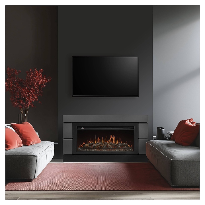 Электрокамин Royal Thermo Aurora RTFP/P-AR40LS используется в качестве обогревателя, а также для украшения интерьера и создания уютной атмосферы в помещениях гостиниц, домов отдыха, офисов, загородных домов и других административных и жилых объектов. Модель оснащена горизонтально ориентированной «топочной» камерой с плоским остеклением, воздухозаборными отверстиями сверху, воздуховыпускными отверстиями спереди, термостатом, кабелем питания с евровилкой, расположенной в верхней части фасада электронной панелью управления с функциональными клавишами и цифровым дисплеем, пульт – кнопочной клавиатурой. Корпус прибора, фронтальные рамка и решетка выполнены из стали с покрытием черного цвета, остекление – из ударопрочного стекла, корпус пульта – из черного пластика. Комплектация: