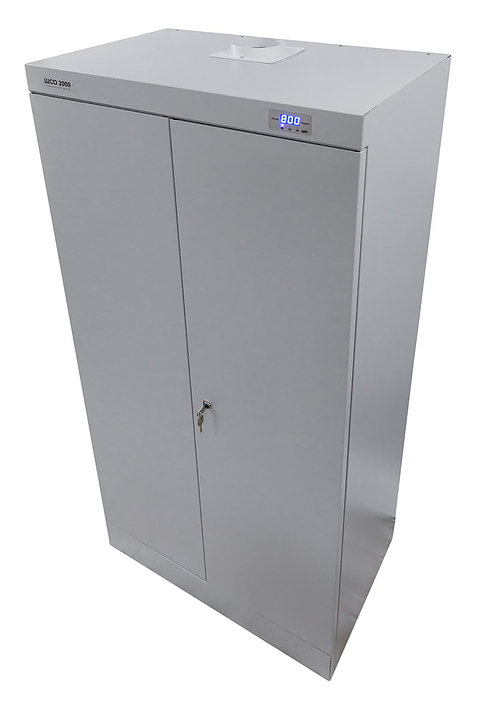 Сушильный шкаф КМК ЗАВОД ШСО-2000 используется на производствах, в частных домах и квартирах для сушки мокрой одежды и обуви, предварительный отжим не требуется. Шкаф состоит из двух базовых элементов: верхней части корпуса шкафа и нижней подставки с встроенным блоком нагрева. Верхняя часть корпуса соединяется с подставкой с помощью стандартных метизов. Верхняя часть корпуса закрывается двумя дверьми, в одной из которых установлен почтовый замок, запирающий одновременно обе двери. Внутри верхняя часть корпуса снабжена шестью съемными сетчатыми полками. Нижняя подставка шкафа представляет собой рамную конструкцию, состоящую из передней и задней панелей, изготовленных из листовой стали, двух боковых и одной нижней рам, изготовленных из профильной трубы. В передней панели встроен блок нагрева. Упаковка:
