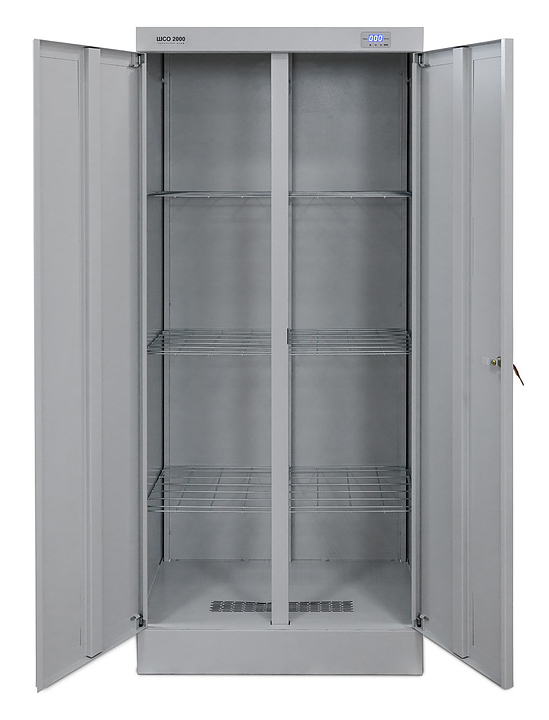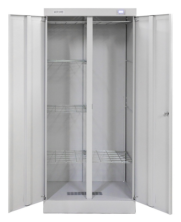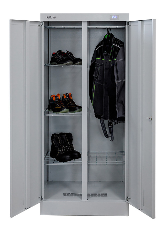 Сушильный шкаф КМК ЗАВОД ШСО-2000Н используется на производствах, в частных домах и квартирах для сушки мокрой одежды и обуви, предварительный отжим не требуется. Шкаф состоит из двух базовых элементов: верхней части корпуса шкафа и нижней подставки с встроенным блоком нагрева. Верхняя часть корпуса соединяется с подставкой с помощью стандартных метизов. Верхняя часть корпуса закрывается двумя дверьми, в одной из которых установлен почтовый замок, запирающий одновременно обе двери. Внутри верхняя часть корпуса снабжена шестью съемными сетчатыми полками. Верхняя часть корпуса и нижняя подставка с встроенным блоком нагрева изготовлены из нержавеющей стали AISI 430, стойкой к воздействию влажной среды, допускающий влажную уборку без применения моющих средств. В передней панели встроен блок нагрева. Упаковка: