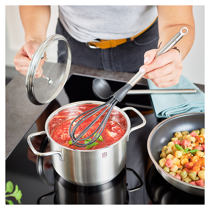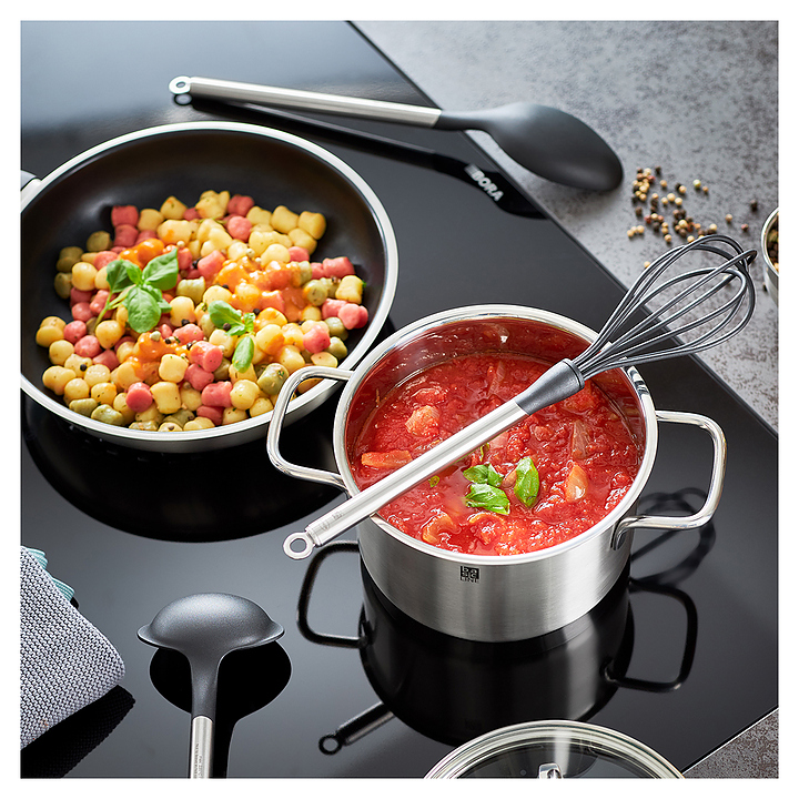 Венчик ROESLE Basic Line 130707 используется на предприятиях общественного питания для ручного взбивания соусов, кремов, муссов и других смесей. Модель оснащена удобной длинной ручкой с петлей на конце. Изделие можно мыть в посудомоечной машине. Ручка выполнена из нержавеющей стали 18/10, отличающейся прочностью и долговечностью, рабочая часть - из нейлона, который защищает кастрюли от царапин. Дополнительные характеристики: