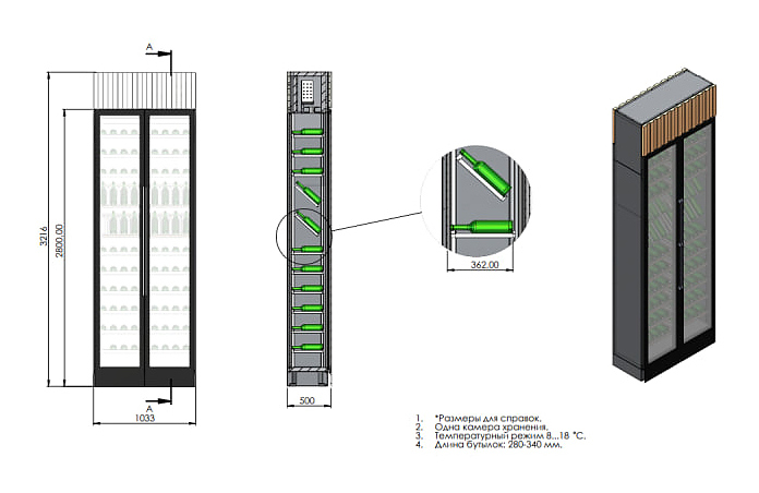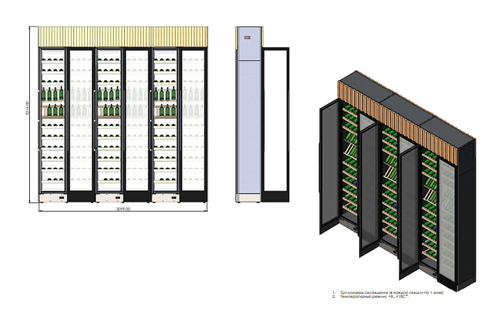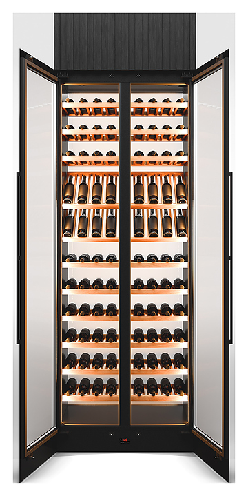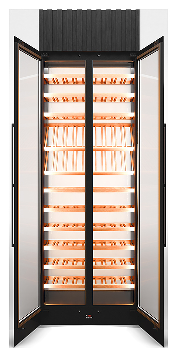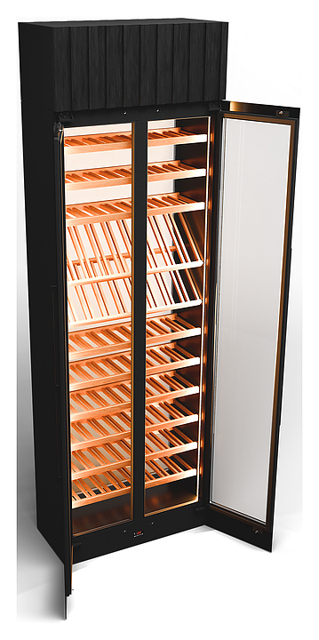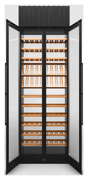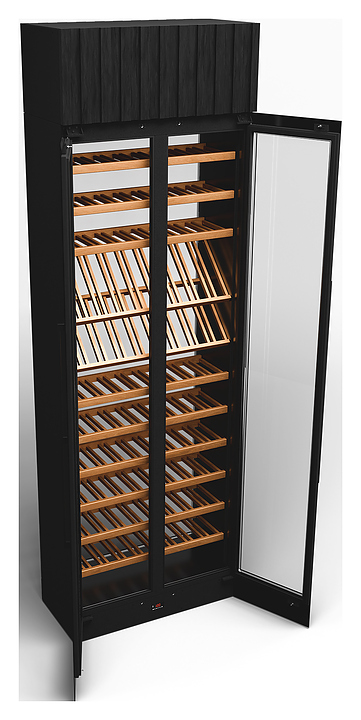 Винный шкаф Winekeys Яхт-клуб предназначен для демонстрации, хранения и создания оптимальных условий для сохранения вкусовых свойств вина в бутылках на предприятиях общественного питания и торговли. Модель оснащена 2 распашными дверьми со скрытой рамой и магнитным уплотнителем, встроенной подсветкой с пультом дистанционного управления и испарителем в верхнем цоколе. Выносной компрессорный блок обеспечивает бесшумную работу винного шкафа и большее место для хранения вина. Корпус выполнен из окрашенной порошковой краской стали, двери - из стеклопакетов, задняя стенка - из глухого стеклопакета, полки - из массива бука. Особенности: