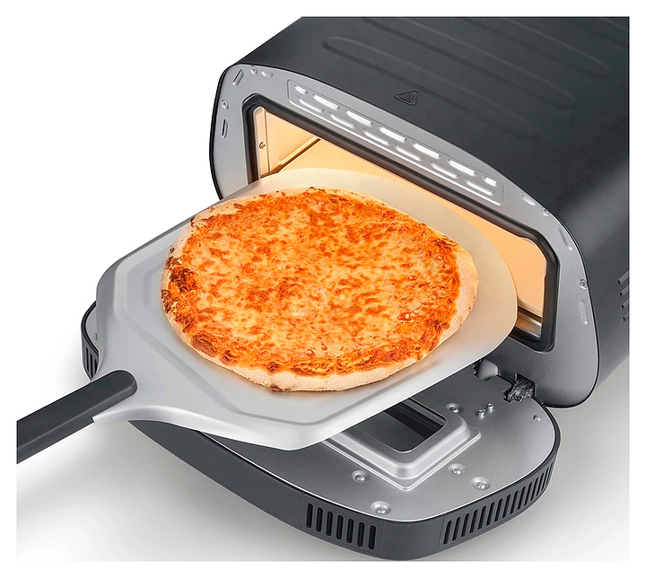 Мини-печь CASO PizzaChef 430° предназначена для приготовления пиццы, кальцоне и других блюд на основе теста в квартирах, частных домах, кафе и ресторанах, а также на открытом воздухе. Модель оснащена сенсорной панелью управления, плавной регулировкой температуры и независимой регулировкой верхнего и нижнего нагрева. Корпус выполнен из стали, отличающейся жаропрочностью и безопасностью, дверца - из тройного стекла. В комплект поставки входят камень для пиццы и лопатка. Особенности: