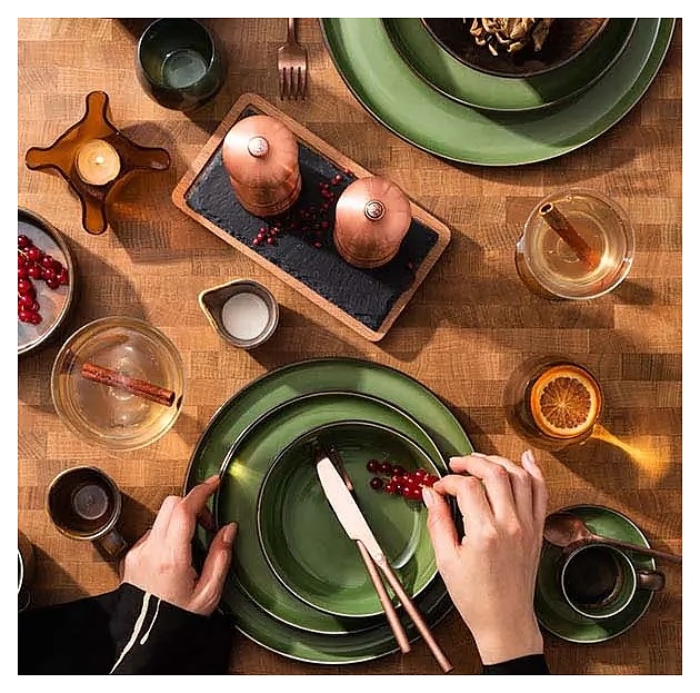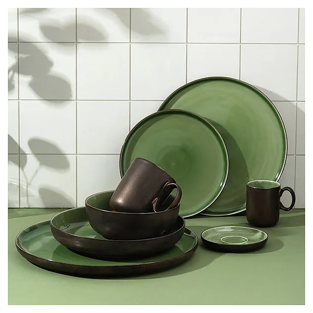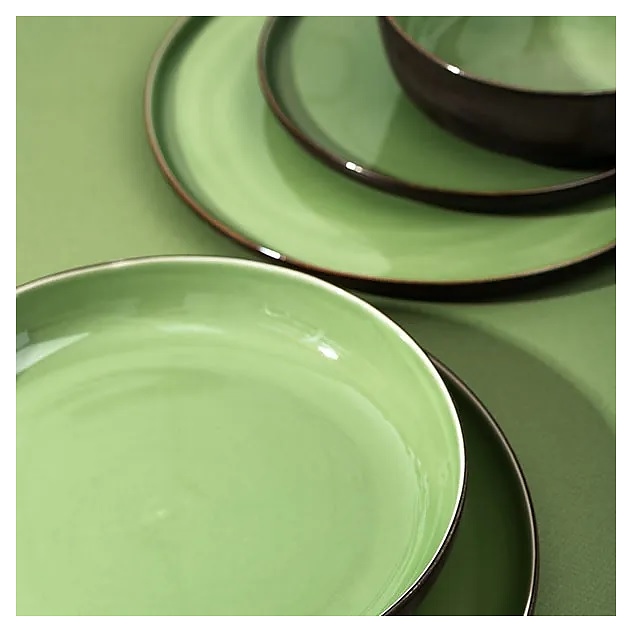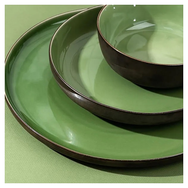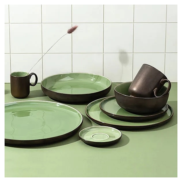Тарелка Kunstwerk Sage HL374500 используется для подачи основных блюд в барах, ресторанах, на других предприятиях общественного питания и в домашних условиях. Емкость круглого сечения оснащена невысоким бортом. Изделие выполнено из высококачественного фарфора с глазурованной поверхностью – глянцевой зеленого оттенка с внутренней стороны и матовой бронзового оттенка с наружной стороны. Особенности: