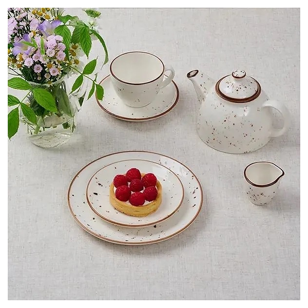 Блюдце Kunstwerk Paris LN01CT используется при подаче чая в барах, ресторанах, на других предприятиях общественного питания и в домашних условиях. Предметы коллекции отличаются минималистичными округлыми формами и гармонично интегрируются в любой интерьер. Емкость круглого сечения оснащена плавно расширенным к кромке бортом. Изделие выполнено из высококачественного фарфора с глазурованной глянцевой поверхностью молочного оттенка с декором в виде крапин и кантом на кромке в коричневых тонах. Особенности: