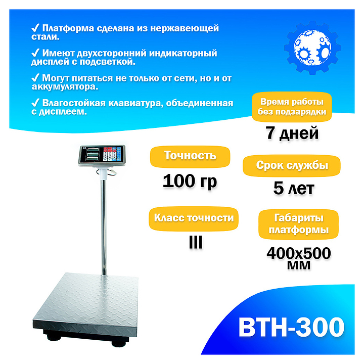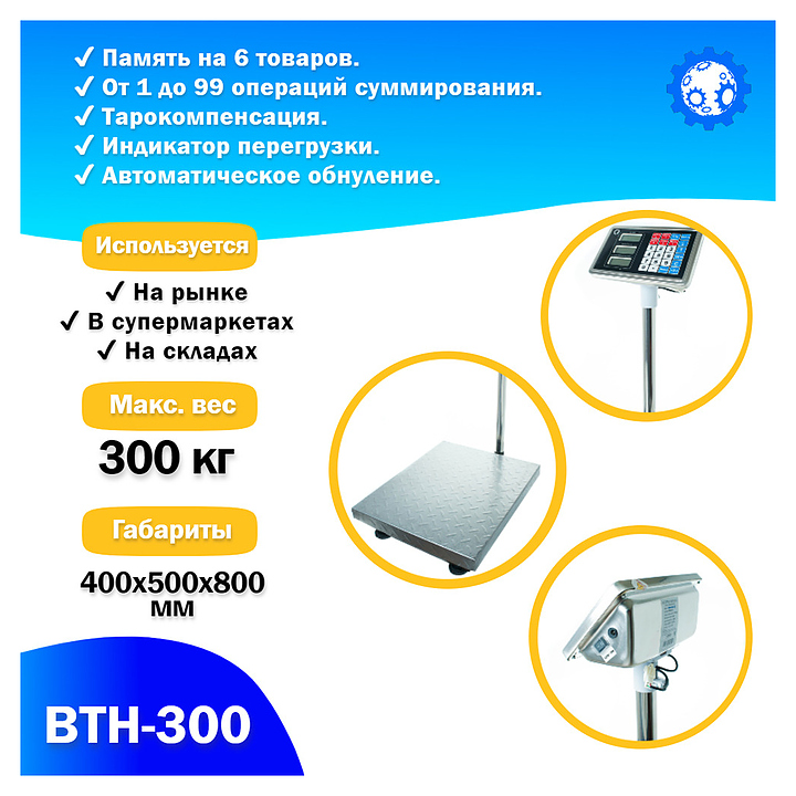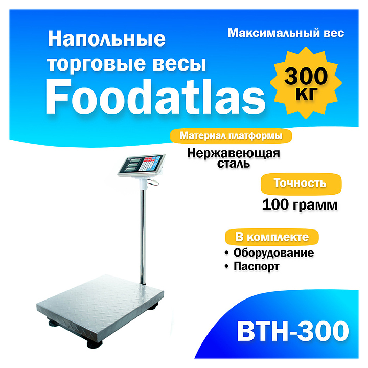 Торговые весы Foodatlas ВТН-300 300кг/100гр напольные, белый