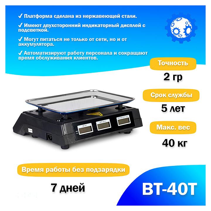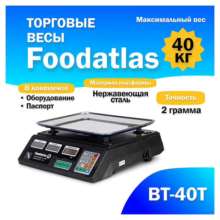 Торговые весы Foodatlas ВТ-40Т 40кг/2гр настольные, черный