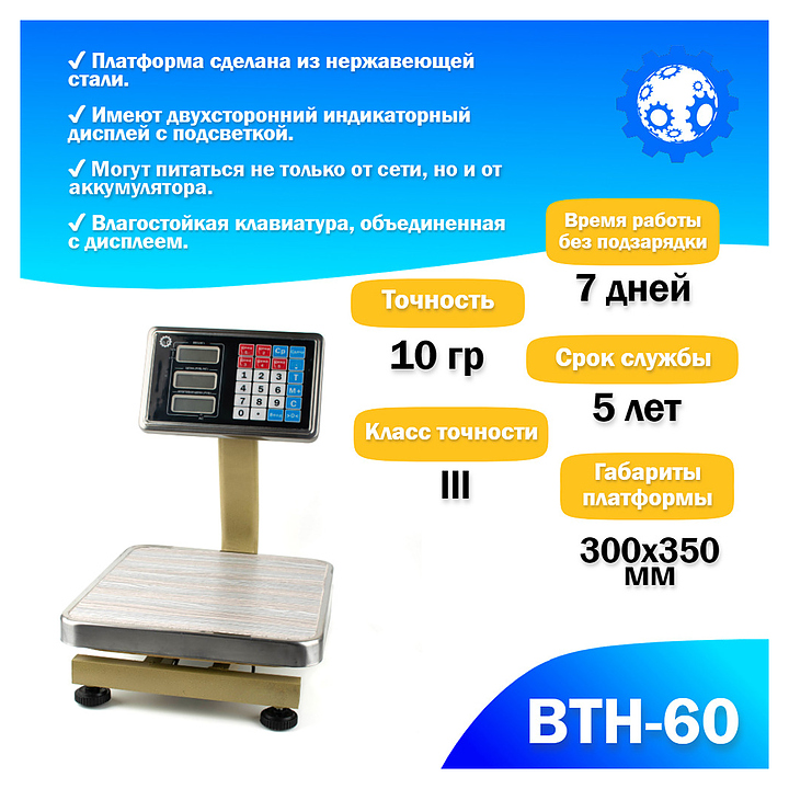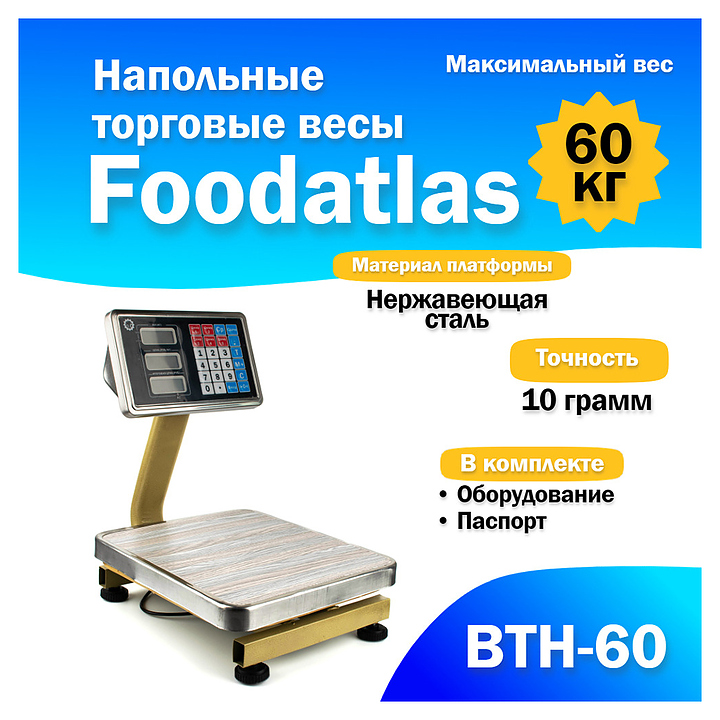 Торговые весы Foodatlas ВТН-60 60кг/10гр напольные, нержавеющая сталь
