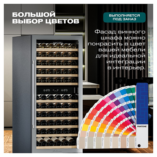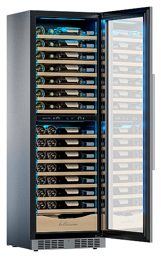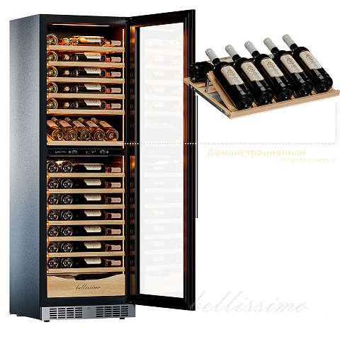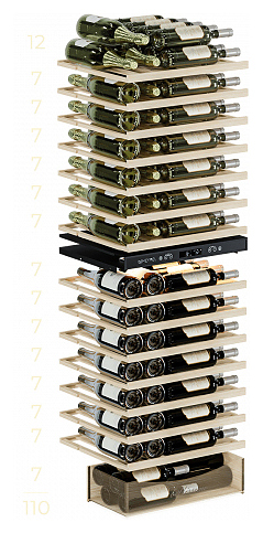 Винный шкаф MEYVEL MV110-KST2 (Slim) предназначен для демонстрации, хранения и создания оптимальных условий для сохранения всех вкусовых свойств вина в бутылках на предприятиях общественного питания, торговли, в барах, ресторанах, специализированных магазинах, частных домах или квартирах. Модель оснащена сенсорной панелью управления, 2 электронными термостатами и внутренней светодиодной подсветкой. Корпус и дверная ручка выполнены из окрашенной в стальной цвет стали, дверь - из тройного стекла с УФ защитой с рамкой, из нержавеющей стали, полки - из массива бука отлично гасят вибрацию. В комплект поставки входят петли для перенавешивания двери. Особенности: