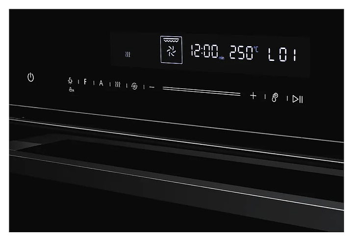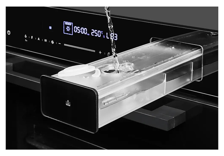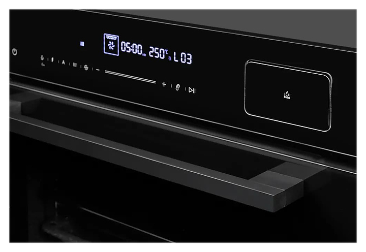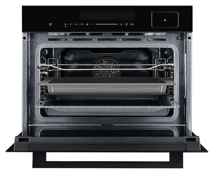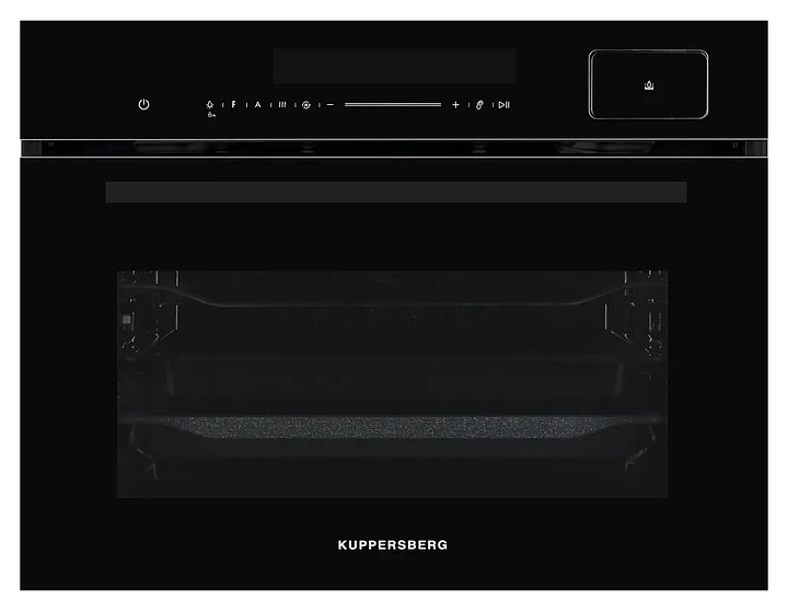 Встраивамый электрический духовой шкаф Kuppersberg KSO 616 предназначен для приготовления большого ассортимента блюд в домашних условиях. Модель оснащена камерой с расположенными в задней стенке кольцевым нагревательным элементом и вентилятором, парогенератором, верхним и нижним нагревательными элементами, верхним грилем, 2 боковыми стойками с 3 уровнями направляющих для противней, откидной дверью со смотровым окном, уплощенной горизонтальной рукояткой, кабелем питания с вилкой, расположенной в верхней части фронта электронной панелью управления с сенсорными функциональными клавишами и информативным светодиодным дисплеем с белой подсветкой индикации. Корпус выполнен из высококачественной стали, фронт с покрытием черного цвета и полным остеклением без винтового крепежа, боковые стойки и решетка для гриля – из стали с хромированной поверхностью, противни – из стали с эмалированным покрытием, рукоятка – из металла с матовой поверхностью черного цвета.