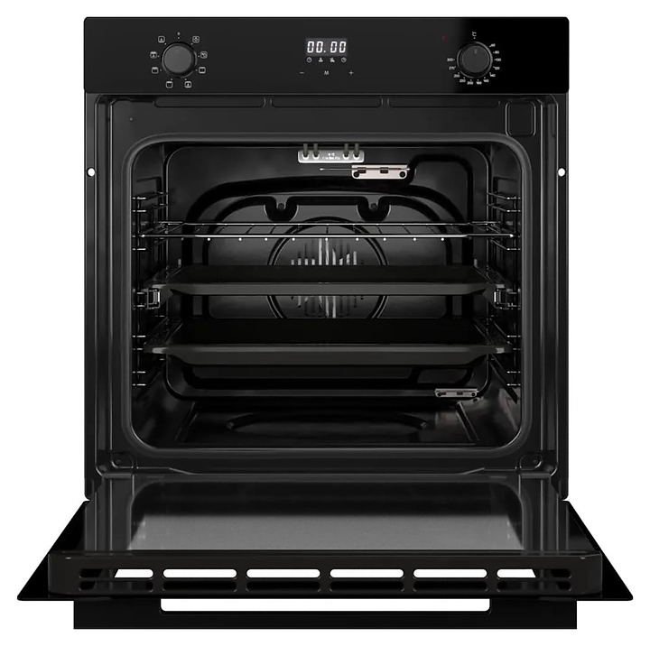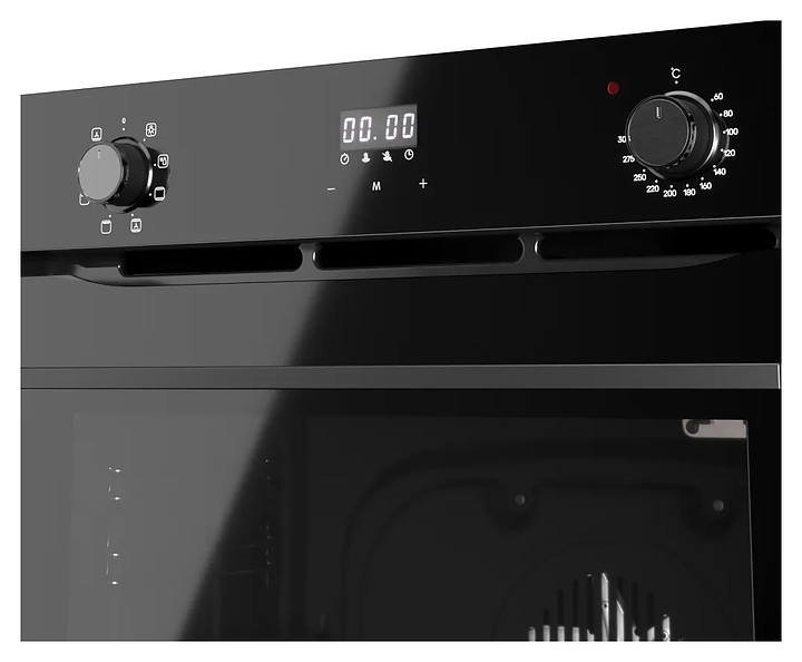 Встраиваемый электрический духовой шкаф Kuppersberg HO 620 BL предназначен для приготовления большого ассортимента блюд в домашних условиях. Модель оснащена камерой с расположенным в задней стенке вентилятором, верхним и нижним нагревательными элементами, верхним грилем, 2 боковыми стойками с 5 уровнями направляющих для противней, откидной дверью со смотровым окном и уплощенной горизонтальной рукояткой, расположенной в верхней части фронта электромеханической панелью управления с 2 цилиндрическими поворотными переключателями, сенсорными функциональными клавишами и светодиодным цифровым дисплеем с белой подсветкой индикации. Корпус выполнен из высококачественной стали, фронтальные панели с черным покрытием и полным остеклением без винтового крепежа, решетка, направляющие и боковые стойки – из металла с хромированным покрытием, противень – из металла с эмалированным покрытием, фурнитура с матовой черной поверхностью.
