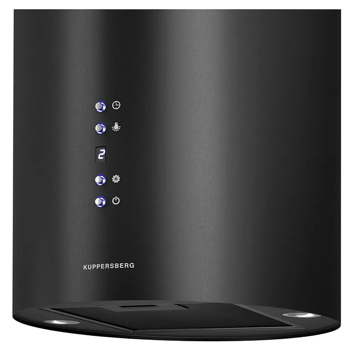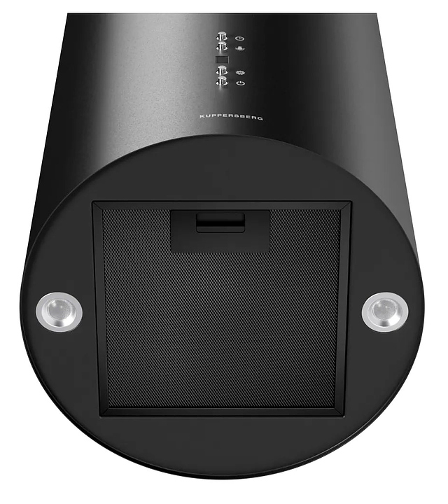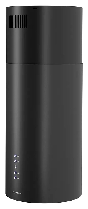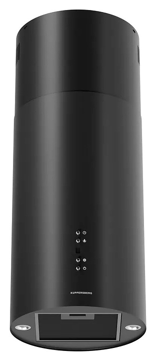 Островная кухонная вытяжка Kuppersberg TUBA 35 B предназначена для очистки воздуха от продуктов горения, копоти и запахов в процессе приготовления пищи путем принудительной вентиляции в домашних условиях. Модель оснащена электродвигателем с вентилятором, кабелем питания, 2 круглыми светильниками, панелью управления с нажимными функциональными клавишами и цифровым дисплеем индикации. Короб цилиндрической формы выполнен из стали с матовым покрытием термостойкой эмалью черного цвета, жироулавливающий фильтр – из алюминия с матовым покрытием черного цвета, фурнитура с поверхностью серебристого оттенка. Комплектация: