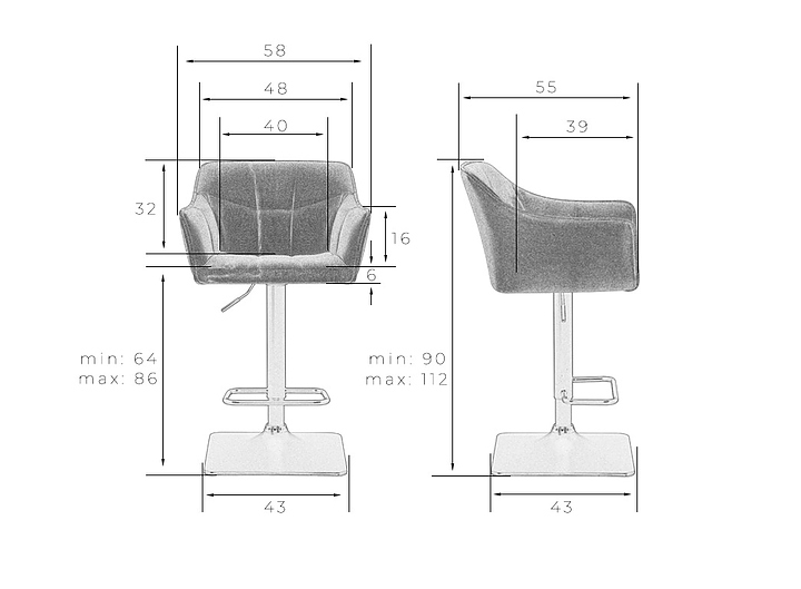 Барный стул DOBRIN 5033-LM-N RALF предназначен для обустройства барной зоны в кухнях, столовых, гостиных, а также в кафе и ресторанах. Модель оснащена прямоугольным основанием, мягким вращающимся сиденьем квадратной формы, механизмом регулировки высоты, мягкой спинкой, подлокотниками и подставкой для ног. Основание выполнено из металла, обивка - из твида.