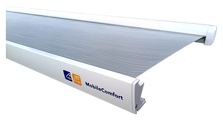 Автомобильная электрическая маркиза MobileComfort EAGLE ME500WG используется в качестве выдвижного навеса для автодомов и кемперов в целях надежной защиты салона и расположенной под тентом территории от солнца и осадков. Корпус выполнен из высокопрочного алюминия и качественного АБС-пластика с поверхностью белого цвета, полотно тента светло-серого оттенка с устойчивым к влаге и ультрафиолетовым лучам виниловым покрытием.