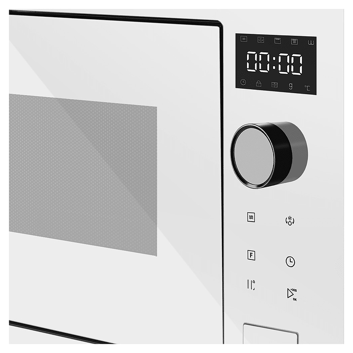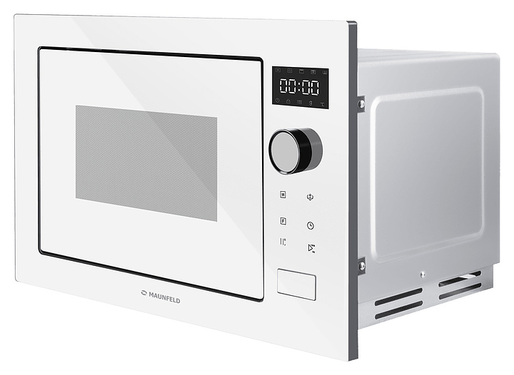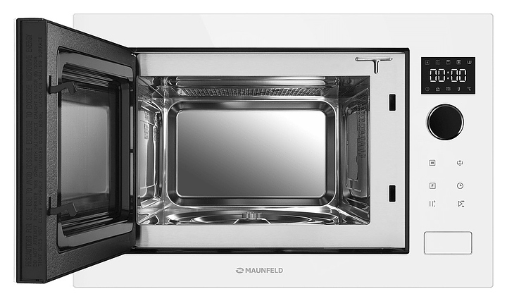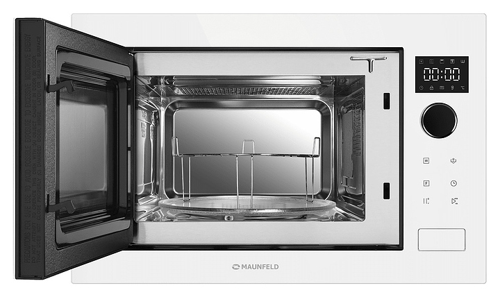 Встраиваемая микроволновая печь Maunfeld XBMO251GB Glossy предназначена для приготовления различных блюд, подогрева готовых блюд и ингредиентов, а также размораживания полуфабрикатов в гостиницах, офисах и домашних условиях. Модель оснащена камерой с верхним тэновым грилем, левосторонней распашной дверью со смотровым окном, кабелем питания с вилкой, расположенной с правой стороны фронта электромеханической панелью управления с поворотным переключателем, сенсорными функциональными клавишами и цифровым дисплеем с белой подсветкой индикации. Корпус выполнен из стали, фасадные панели с полным остеклением без винтового крепежа закаленным стеклом с белой глянцевой поверхностью, внутренняя облицовка камеры – из высококачественной нержавеющей стали, поворотный стол – из ударопрочного стекла. Комплектация: