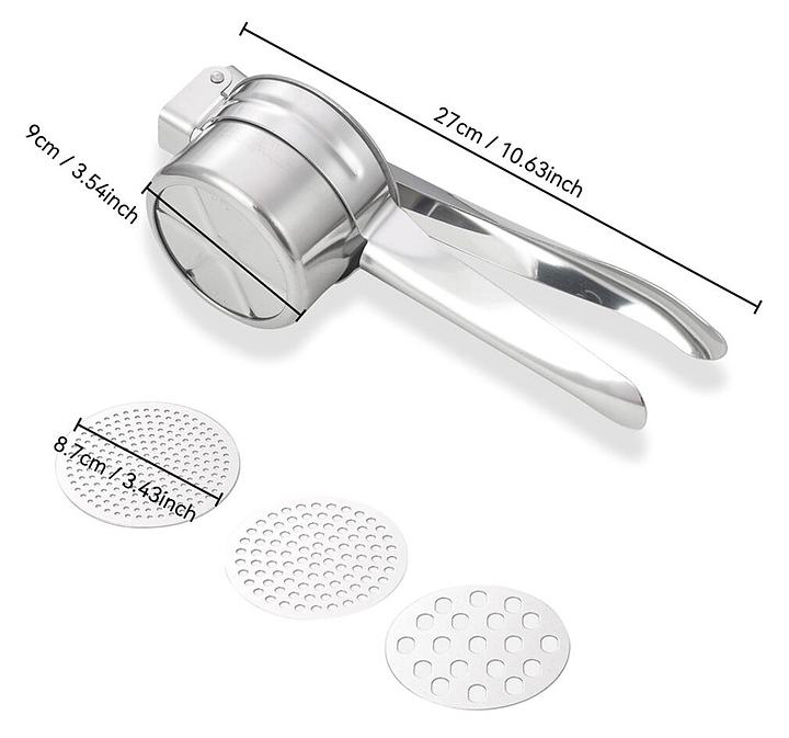 Пресс P.L. Proff Cuisine PMS-11T / DJENI используется на предприятиях общественного питания и торговли, а также в домашних условиях для получения пюре из картофеля и других овощей. Изделие выполнено из нержавеющей стали, отличающейся прочностью и долговечностью. В комплект поставки входят 3 диска. Дополнительные характеристики: