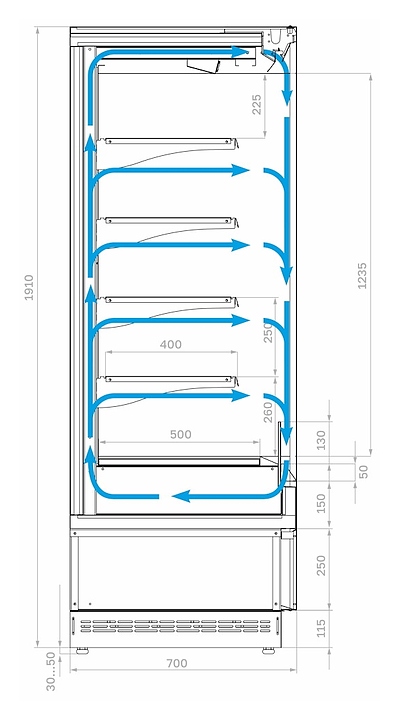 Холодильная горка Carboma CUBE 2 FC20-07 VM 1,3-2 2.0 используется на предприятиях общественного питания и торговли для охлаждения, кратковременного хранения, демонстрации и продажи напитков, мяса, птицы, колбасных, молочных и гастрономических изделий. Модель оснащена 4 рядами полок и регулируемыми ножками. Корпус выполнен из окрашенной стали с ППУ изоляцией. Особенности: