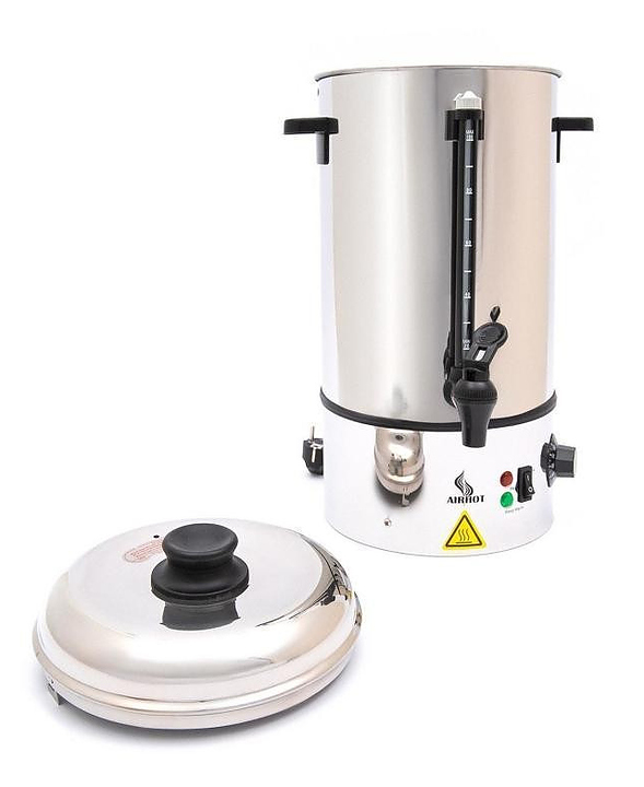 Кипятильник Airhot WB-30 используется на предприятиях общественного питания и торговли, в офисах, отелях и т.д. для нагрева большого количества воды. Модель оснащена автоматическим контролем уровня и температуры воды, аварийным термостатом, индикатором нагрева и закрытым ТЭНом. Корпус выполнен из нержавеющей стали. Дополнительные характеристики: