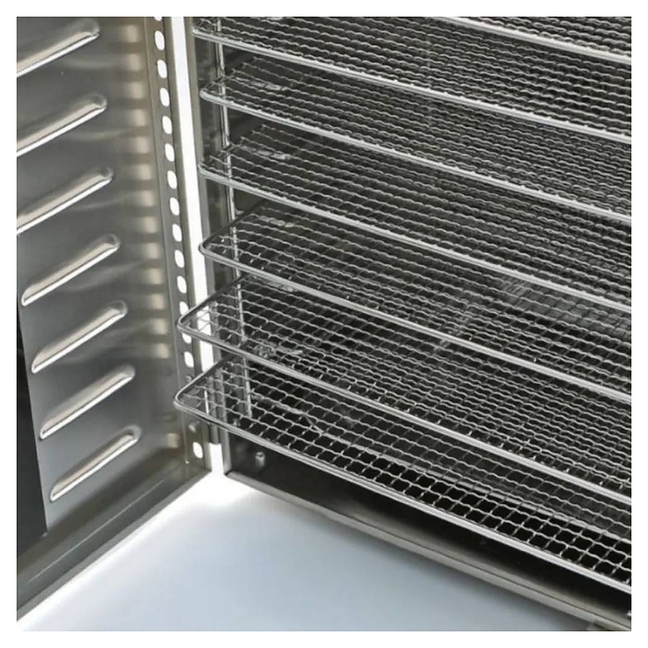 Дегидратор Airhot FD-8 используется на предприятиях общественного питания и торговли, в производственных цехах, а также в домашних условиях для сушки овощей, грибов, фруктов и ягод. Модель оснащена электронной панелью управления и вентилятором на задней части корпуса. Корпус выполнен из нержавеющей стали.