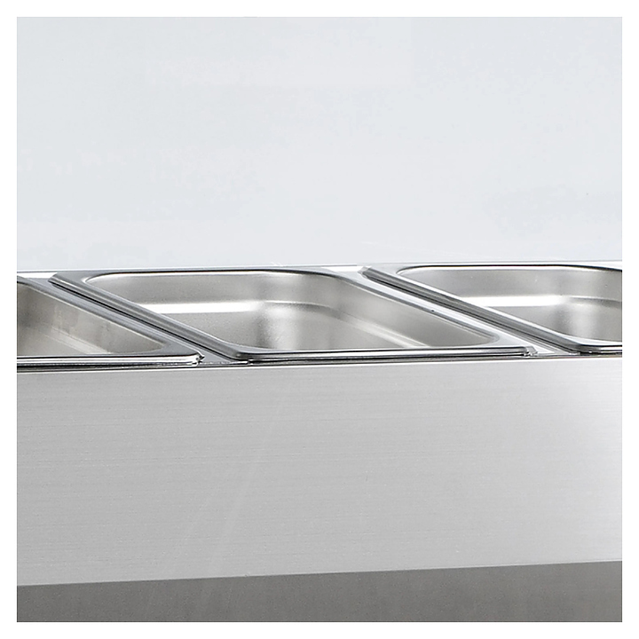 Холодильная витрина TEFCOLD VK33-180 предназначена для кратковременного хранения и демонстрации готовых салатов, мясных или рыбных закусок, а также ингредиентов для них на предприятиях общественного питания и торговли. Корпус и внутренняя обшивка выполнены из нержавеющей стали. Гастроемкости в комплект поставки не входят. Особенности: