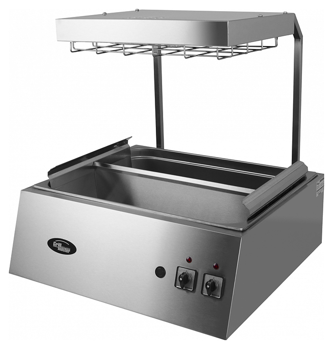 Станция Grill Master Ф2ПКЭ предназначена для подогрева и поддержания уже готового картофеля фри в теплом состоянии на предприятиях общественного питания и торговли. Модель оснащена деликатным подогревом продукта сверху, что позволяет сохранять картофель фри достаточно долго в горячем виде без потери качества. Корпус выполнен из нержавеющей стали. Особенности: