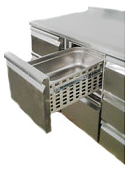 Холодильный стол POLAIR TM3GN-G серии Grande предназначен для хранения продуктов и обработки ингредиентов на рабочей поверхности на предприятиях общественного питания и торговли. Цельнозаливной корпус и двери изготовлены из нержавеющей стали, обеспечивающей механическую прочность, термоизоляцию, герметичность и долговечность стола, полки - из окрашенной оцинкованной проволки. Оборудование рассчитано на работу при температуре окружающей среды до 43 °С и относительной влажности воздуха до 80%. Уникальная программа по расчету столов с выдвижными ящиками (более 5000 различных сочетаний). Особенности: