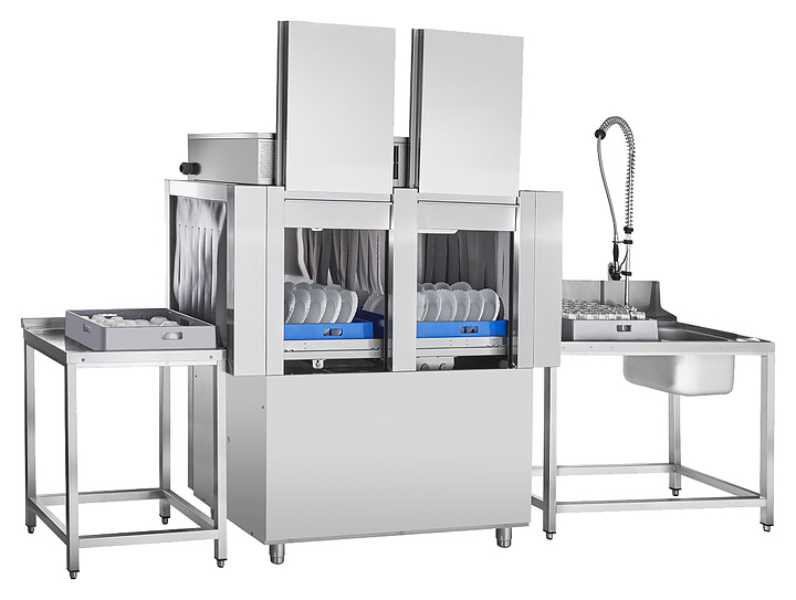 Туннельная посудомоечная машина Abat МПТ-1700 используется на предприятиях общественного питания и торговли для мойки тарелок, стаканов, бокалов, столовых приборов, а также гастроемкостей и противней. Модель оснащена электронной панелью управления и ванной со скругленными углами, облегчающими гигиеническую уборку машины. Детали, контактирующие с водой, и облицовка выполнены из нержавеющей стали AISI 304, моющие и ополаскивающие разбрызгиватели - из нержавеющей стали AISI 304 и AISI 321. Комплектация: