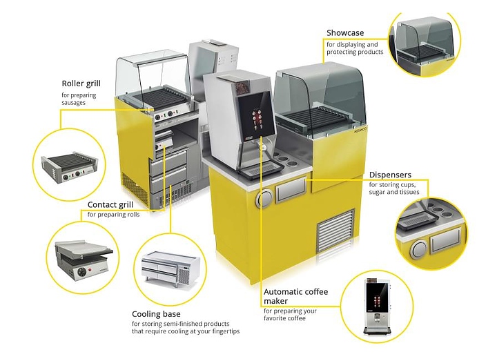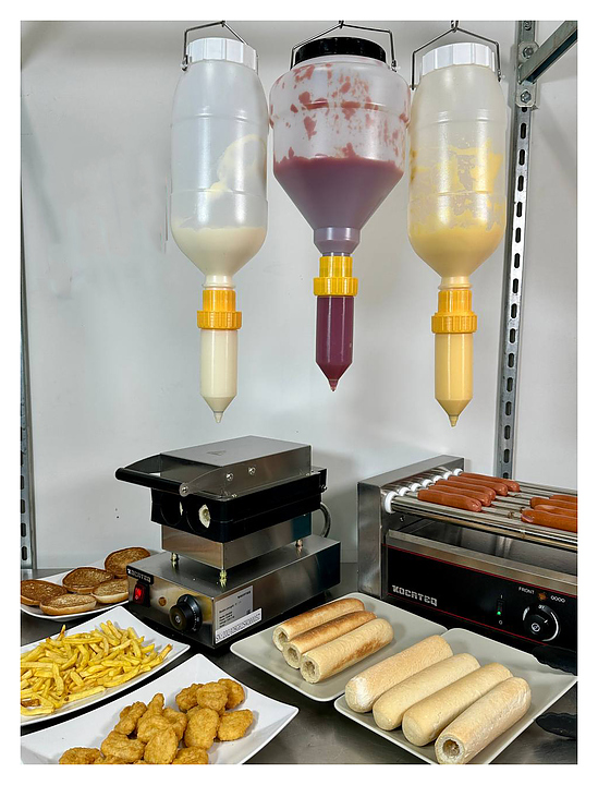 Роликовый гриль Kocateq HD07 предназначен для обжаривания, подогрева и поддержания в горячем виде до 18 мини-сосисок или 12 стандартных сосисок на предприятиях общественного питания и торговли. Модель оснащена термостатами, раздельными для каждой зоны нагрева, для регулировки температуры. Ролики и корпус выполнены из нержавеющей стали AISI 304. Особенности: