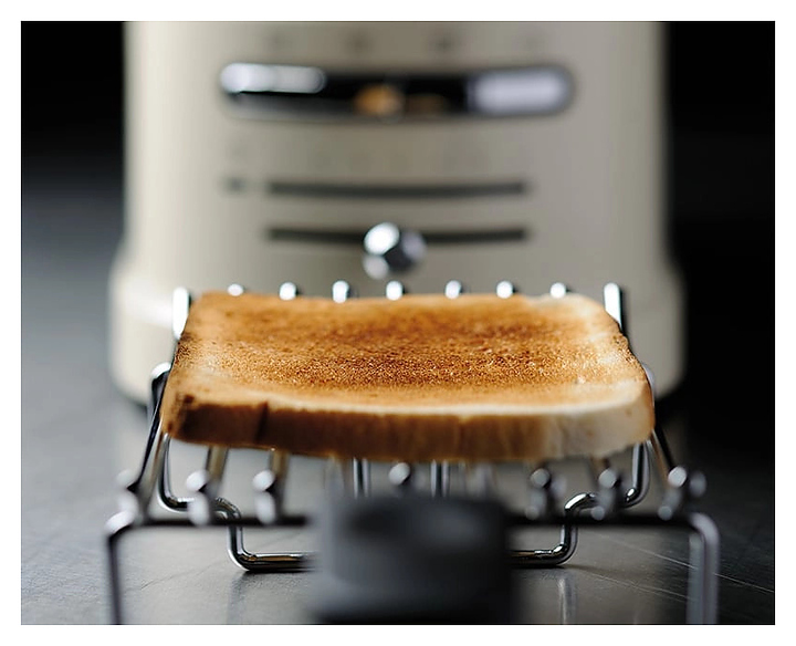 Тостер KitchenAid Artisan 5KMT2204EER предназначен для поджаривания кусочков хлеба, размораживания и приготовления замороженных тостов, сэндвичей, бейглов и булочек. Модель оснащена панелью управления с подсветкой кнопок голубым цветом и выдвижным поддоном для крошек. Корпус выполнен из литого алюминия. Особенности: