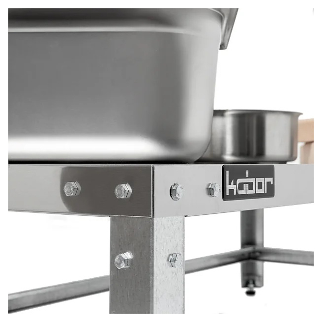 Подтоварник Кобор ПТ-90/60/430 служит для временного складирования кухонного инвентаря и продуктов питания. Подтоварник произодится из нержавеющей стали. Ножки регулируются по высоте, позволяя избежать наклона рабочей поверхности. Изделие доставляется в разобранном виде для облегчения транспортировки. Особенности: