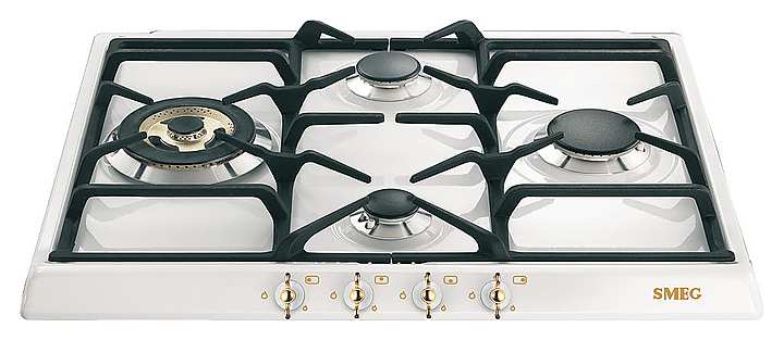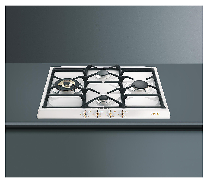 Управление газовой варочной панели Smeg SPR864BGH происходит с помощью позолоченных поворотных переключателей. Оборудование относится к серии Coloniale. Варочная панель легко подвергается санитарной обработке. В комплект входят жиклеры для сжиженного газа G30. Дополнительные характеристики: