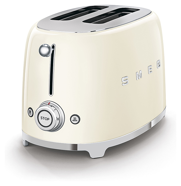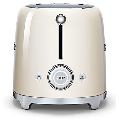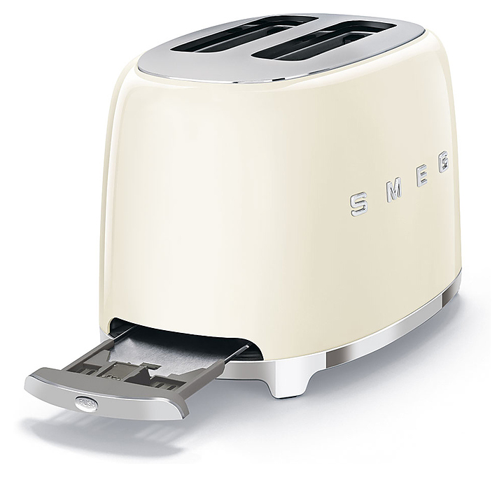 Тостер Smeg TSF01CREU используется для обжаривания ломтиков тостового хлеба. С помощью дополнительно приобретаемых держателей тостер также можно применять для подогрева булочек или сэндвичей. Прибор отличается уникальным дизайном благодаря исполнению в стиле 50-х годов. В комплект поставки входит съемный поддон из нержавеющей стали для крошек. Особенности: