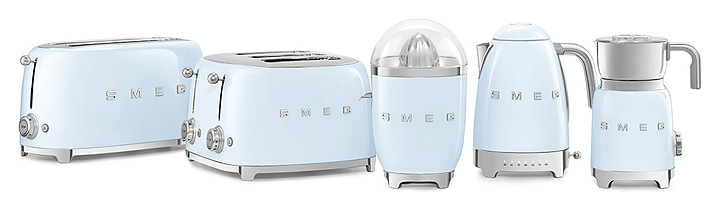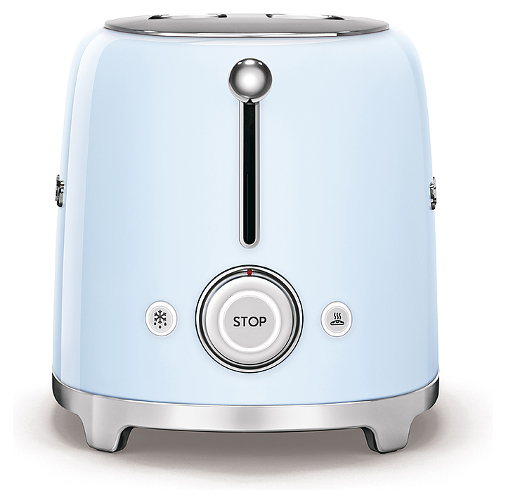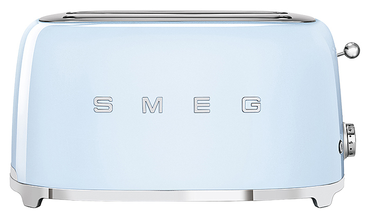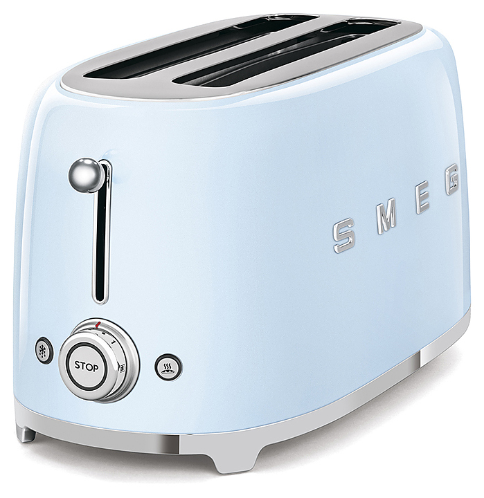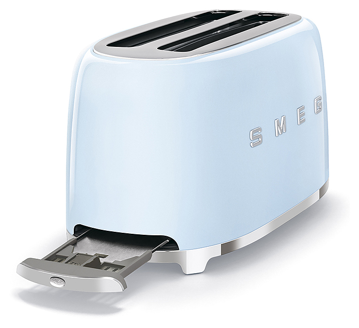 Тостер Smeg TSF02PBEU используется для обжаривания ломтиков тостового хлеба. С помощью дополнительно приобретаемых держателей тостер также можно применять для подогрева булочек или сэндвичей. Прибор отличается уникальным дизайном благодаря исполнению в стиле 50-х годов. В комплект поставки входит съемный поддон из нержавеющей стали для крошек. Особенности: