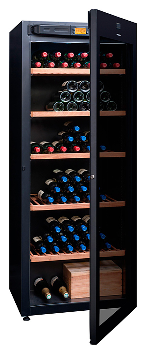 Винный шкаф Climadiff Avintage DVA305G предназначен для хранения вина при определенном уровне влажности и температуры в ресторанах, специализированных магазинах, отелях, подсобных складских помещениях, в частных домах или квартирах. Модель оснащена цифровым дисплеем с возможностью выбора температуры и принудительной вентиляцией. Корпус и внутренняя облицовка выполнены из металла. Особенности: