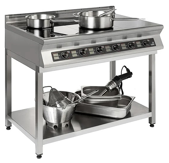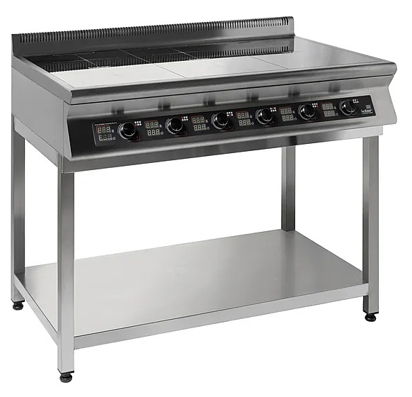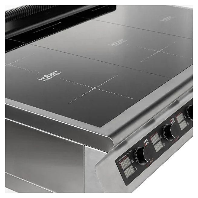 Индукционная плита Кобор I9-6S серии 900 приготовления различных блюд в наплитной посуде на предприятиях общественного питания и торговли. Нагрев поверхности осуществляется почти мгновенно, а выделяемое тепло генерируется только на посуде, сама же плита нагревается незначительно, что позволяет избежать ожогов и потери тепла. Корпус выполнен из нержавеющей стали AISI 304, варочная панель - из монолитной высокопрочной стеклокерамики. Особенности: