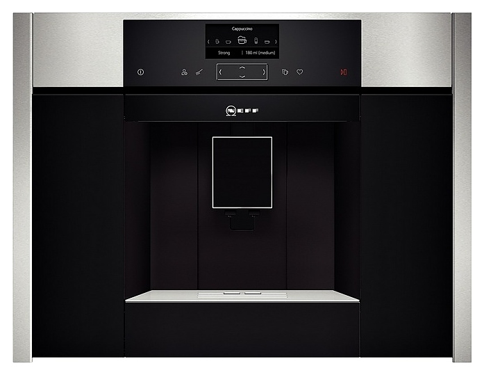Встраиваемая автоматическая кофемашина Neff C15KS61N0 идеальна для приготовления свежесваренного эспрессо, капучино, латте и прочих кофейных напитков в домашних условиях. Для простоты управления модель оснащена графическим дисплеем с многоязыковым меню. Возможность встраивания решает проблему ограниченного пространства. Кофемашина имеет лаконичный стильный дизайн и отлично вписывается в единую линию с другим встраиваемым оборудованием. Комплектация: