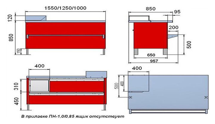 Прилавок неохлаждаемый Марихолодмаш ПН-1,0/0,85