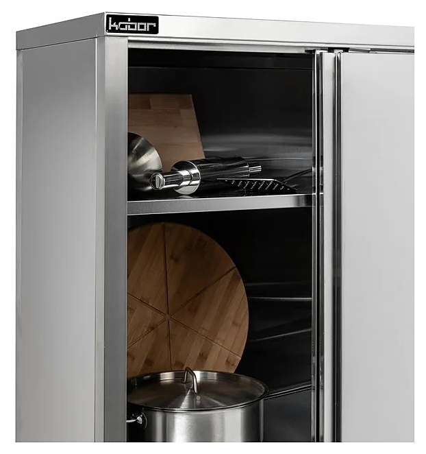Шкаф Кобор ШК-150/60 используется для хранения кухонной утвари, инвентаря и сухих продуктов на предприятиях общественного питания и в производственных цехах, деятельность которых связана с выпуском гастрономических товаров. Внутреннее пространство изделия оснащено 3 вместительными полками, которые могут быть установлены на различных уровнях. Конструкция полностью выполнена из нержавеющей стали, гарантирующей долгий срок эксплуатации. Регулируемые по высоте ножки позволяют устранить практически любые неровности пола.