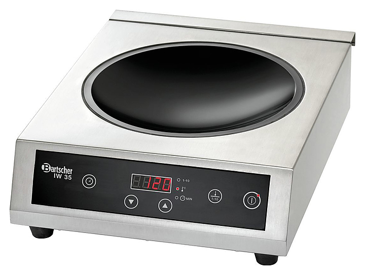 Индукционная плита WOK Bartscher 105986 IW 35 предназначена для приготовления различных блюд в наплитной посуде на предприятиях общественного питания и торговли. Нагрев рабочей поверхности осуществляется моментально, вследствие чего затрачивается меньшее количество электроэнергии. Модель оснащена сенсорной панелью управления. Корпус выполнен из нержавеющей стали, варочная поверхность - из стеклокерамики. С плитой можно использовать только специальную посуду со сферическим дном, обладающим магнитными свойствами: посуда из нержавеющей стали или алюминия с ферромагнитным дном, эмалированная посуда из стали, чугунная посуда (посуда, к которой притягивается магнит). Посуда из меди, латуни, алюминия и жаростойкого стекла не подходит для использования с плитой. Особенности: