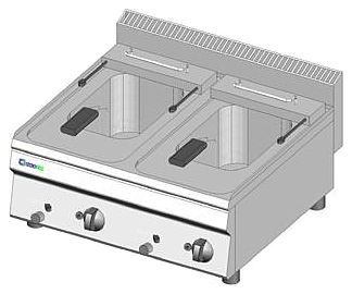 Фритюрница Tecnoinox FR70G/0 серии Tecno65 предназначена для приготовления блюд в большом объёме масла на предприятиях общественного питания и торговли. Модель оснащена трубчатыми горелками и термостатом для предотвращения перегрева. Оборудование изготовлено из нержавеющей стали AISI 304 и может быть расположено на подставке у стены или как центральный остров.