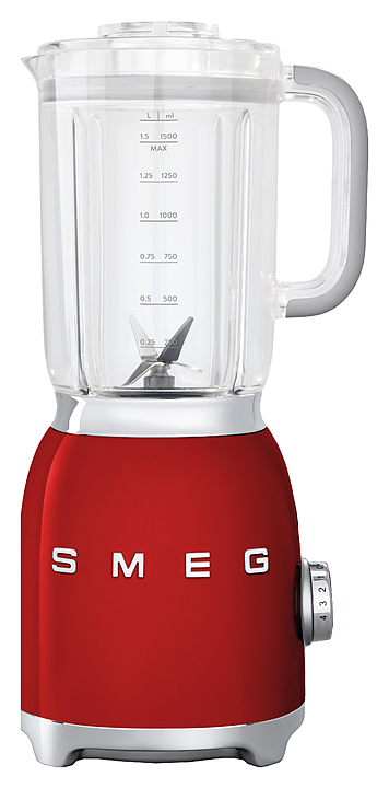Блендер Smeg BLF01RDEU cерии стиль 50-х годов предназначен для приготовления овощных пюре, смузи, муссов, кремов, измельчения льда, приготовления пасты из орехов и пр. на предприятиях общественного питания и в частных домах. Модель оснащена регулятором управления с программами: измельчение льда и smoothie, а также кнопками PULSE, START и STOP. Блендер поставляется в красном цвете. Рекомендации по настройке скорости:
