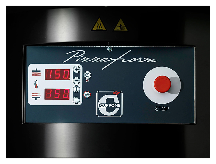 Пресс для пиццы Cuppone Pizzaform PZF/45DS используется на предприятиях общественного питания и торговли для изготовления основ для пицц. Модель оснащена 2 светодиодными дисплеями, показывающими температуру верхней и нижней пластин, таймером и функцией подсчета ударов. Под действием температуры пластин создается тонкий твердый крахмальный слой на внешней стороне теста. Корпус выполнен из нержавеющей стали, пластины - из хромированной стали. Особенности: