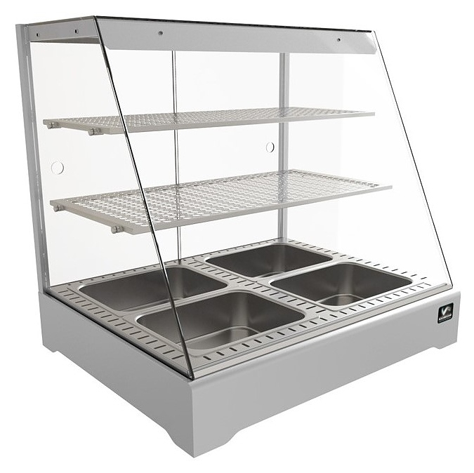 Тепловая витрина Кобор CR2-80H серии Standart предназначена для демонстрации, подогрева и поддержания в теплом состоянии различных блюд на предприятиях общественного питания и торговли. Модель оснащена перфорированными полками 754х350 и 754х280 мм и подсветкой. В комплект поставки входят 4 гастроемкости GN 1/2 глубиной 40 мм. Дополнительные характеристики: