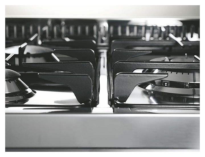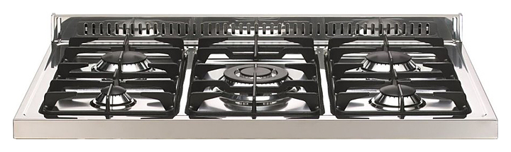 Газовая плита Lofra PBIG 96 GVT предназначена для приготовления широкого спектра первых и вторых блюд, а также выпечки и десертов в домашних условиях. Модель оснащена духовым шкафом и 5 газовыми конфорками Sabaf Series III разного размера. Корпус полностью выполнен из нержавеющей стали, решетки варочной панели - из чугуна, внутренняя часть духового шкафа имеет покрытие Easy to clean для большей легкости очистки, дверца духового шкафа снабжена вставкой из тройного закаленного стекла, два слоя которого обладают отражающими свойствами для меньшего рассеивания тепла. В комплект поставки входят глубокий противень, 2 решетки для духового шкафа, 3 чугунные решетки для варочной поверхности, форсунки для сжиженного газа. Варочная панель: