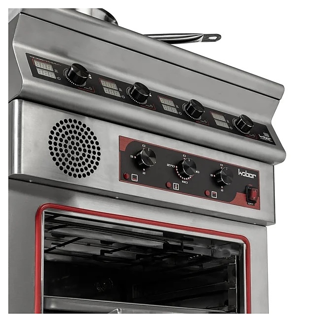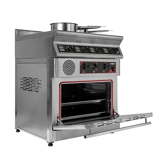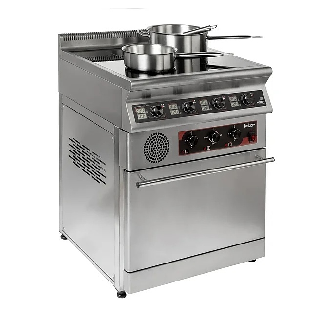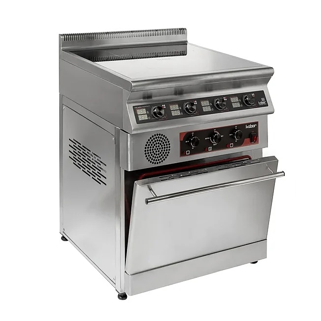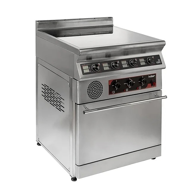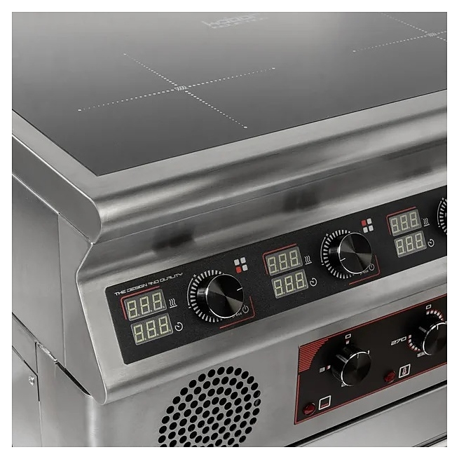 Индукционная плита Кобор I7-4SO серии 700 предназначена для приготовления различных блюд в наплитной посуде на предприятиях общественного питания и торговли. Нагрев поверхности осуществляется почти мгновенно, а выделяемое тепло генерируется только на посуде, сама же плита нагревается незначительно, что позволяет избежать ожогов и потери тепла. Корпус выполнен из нержавеющей стали AISI 304, духовой шкаф - из черного металла, варочная панель - из монолитной высокопрочной стеклокерамики. Особенности: