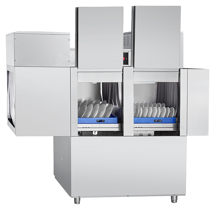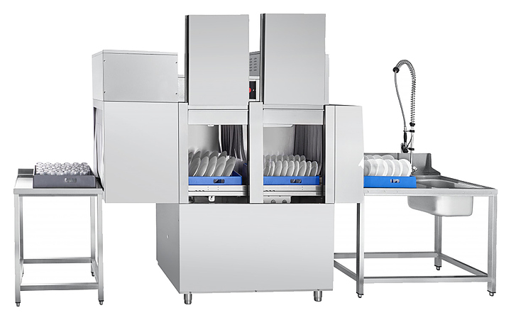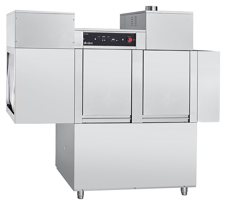 Туннельная посудомоечная машина Abat МПТ-2000 используется на предприятиях общественного питания и торговли для мойки тарелок, стаканов, бокалов, столовых приборов, а также гастроемкостей и противней. Модель оснащена электронной панелью управления и ванной со скругленными углами, облегчающими гигиеническую уборку машины. Детали, контактирующие с водой, и облицовка выполнены из нержавеющей стали AISI 304, моющие и ополаскивающие разбрызгиватели - из нержавеющей стали AISI 304 и AISI 321. Комплектация: