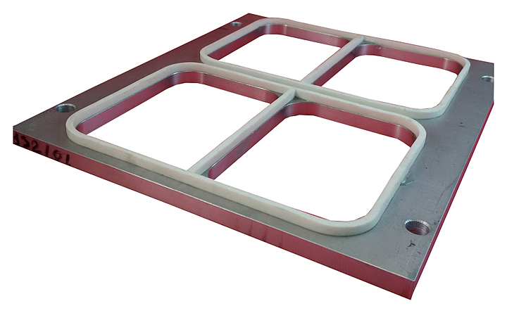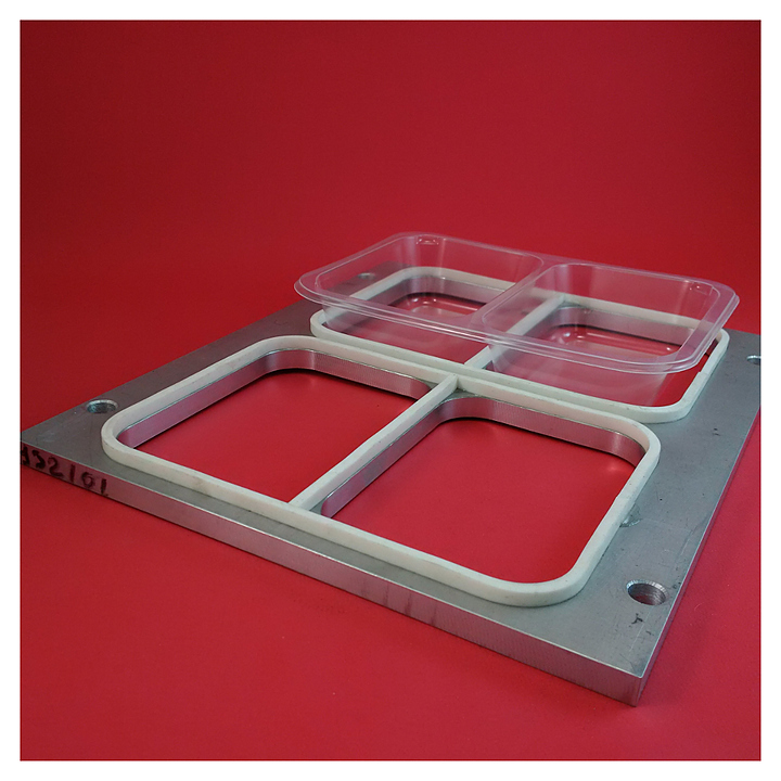 Форма VASSILII № 0132 с 2 двухсекционными отверстиями используется совместно с запайщиком лотков 200х273 мм на предприятиях общественного питания и торговли для запайки полипропиленовых контейнеров прямоугольной формы. Характеристики: