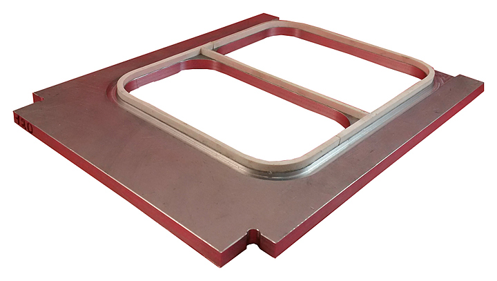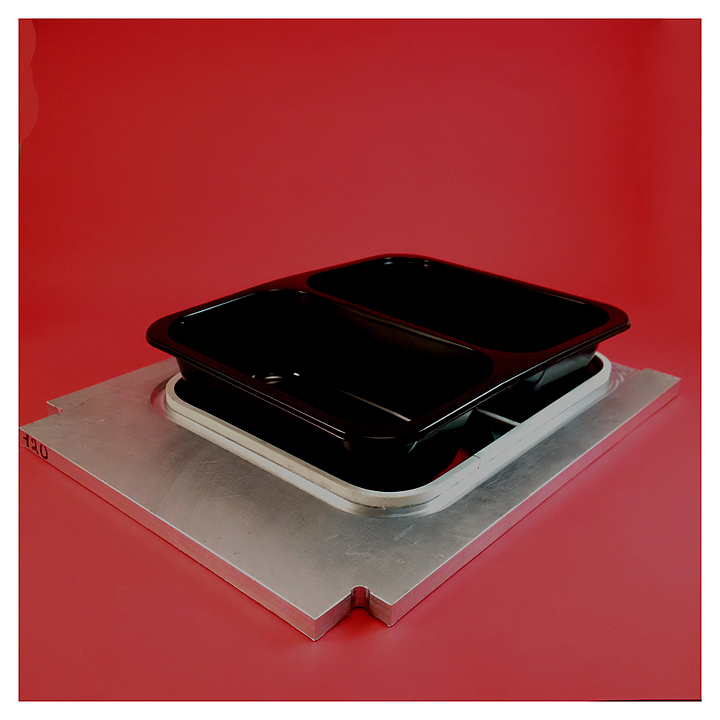 Форма VASSILII № 0120 с двухсекционным отверстием используется совместно с запайщиком лотков 200х273 мм на предприятиях общественного питания и торговли для запайки полипропиленовых немецких контейнеров прямоугольной формы. Характеристики: